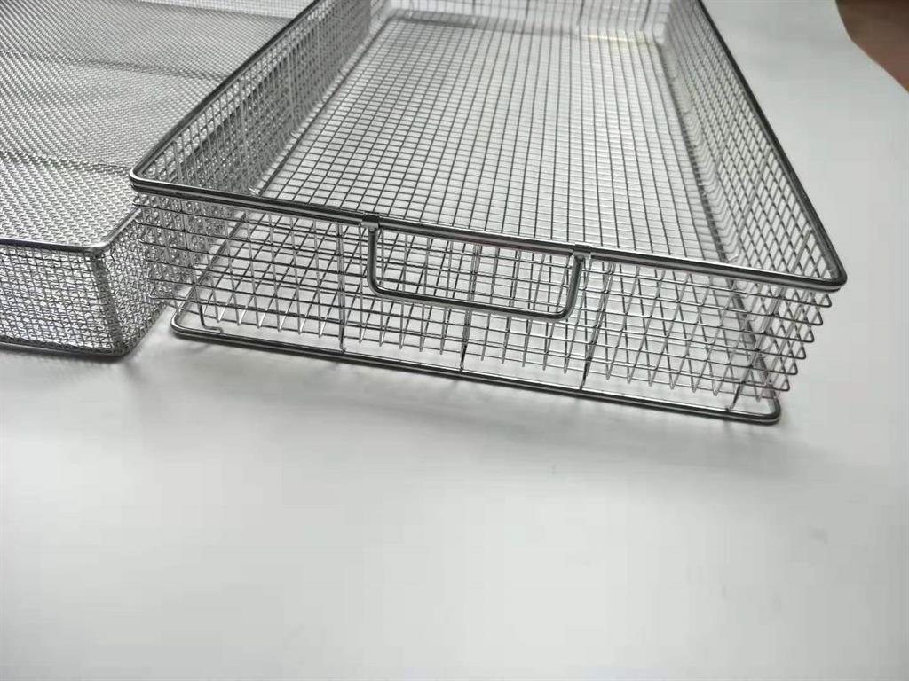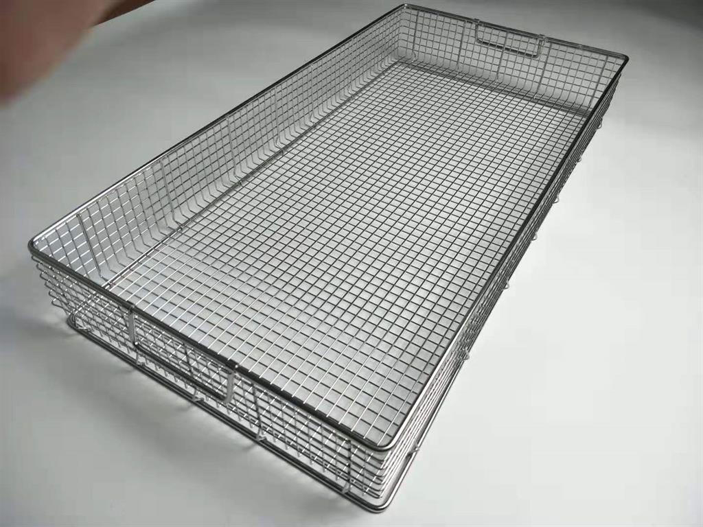 点焊型消毒筐加工经过,直丝,断丝,焊片,折弯,焊接,切毛边,打磨,上提手,整形,表面电解抛光等。压型加工包括:裁片,平片,压型,焊接底套丝,焊接上口套丝,裁边,打磨,上外套丝,上提手,整形,电解抛光等。 其他拼接筐大同小异类似于压型筐,经过:裁片,制套,焊接网架,铺网,上提手,打磨,整形,电解抛光等工序。使用寿命长不易损坏。欢迎广大客户选择正丰品牌。