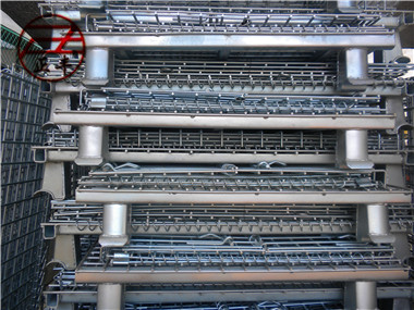 仓储笼主要材料为低碳铁丝、槽钢、热轧钢板等。仓储笼的外形感觉轻巧,笼体除底框外皆有铁丝碰焊成的网片组合而成,网片与网片、网片与底框靠小连接件连接, 可活动。仓储笼空笼时可折叠存放,充分利用空间。仓储笼前面可打开,在堆垛后能取物,堆垛时承重在侧面的网片上。仓储笼目前已_具备可堆垛性、可折叠性 及可搬运性,日益成为物流流通的一种重要的标准物流容器。
