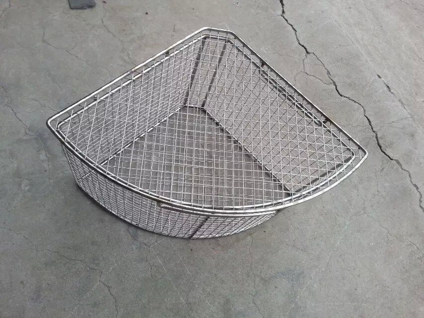 网筐网篮大家都很熟悉.是四个角是直角,成90度角的不锈钢网筐,但谈起异型网筐网篮大家会比较迷忙 .现在我给大家简单介绍一下下异型网筐网篮.异型网筐网篮是3个角简称三角网筐网篮.