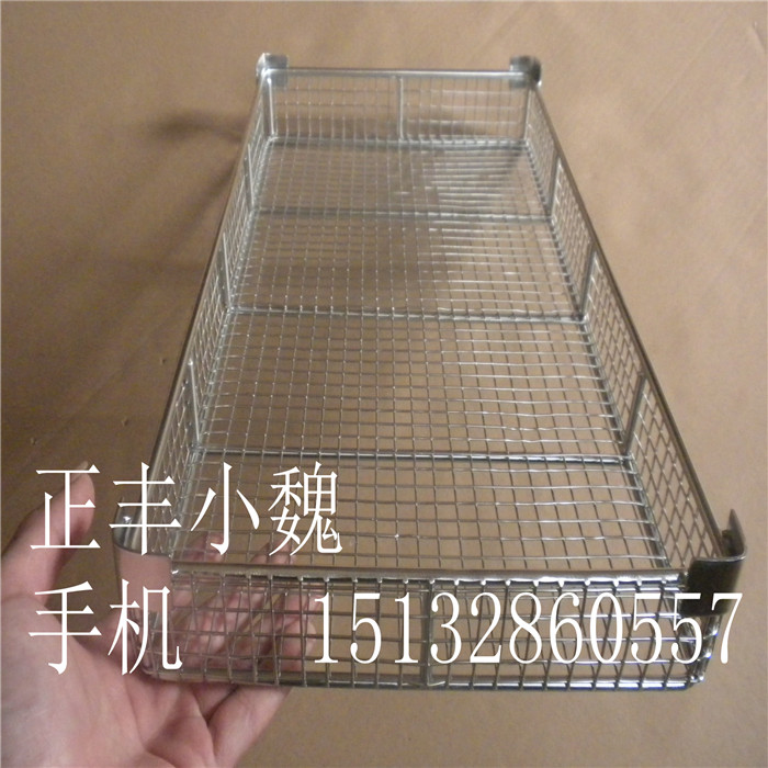 不锈钢手术器械打包网篮产品。主要用于纸塑包装器械消毒时保持垂直,不重叠效果。 用于医院等医疗单位手术室、供应室手术器械、内窥镜、各种容器的初步清洗时使用,也可以配合各种声波清洗机使用。产品尺寸可以是各种常用标准,也可以根据机器的大小定做