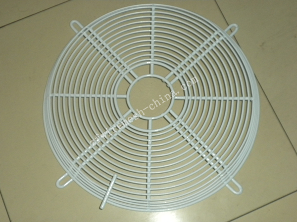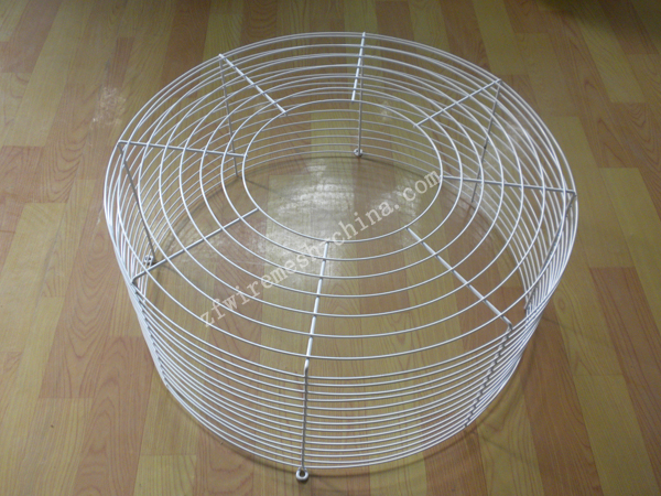 金属防护罩/风机罩采用低碳钢丝为原料,通过折弯成型。风机罩具有美观、焊点牢固、不生锈、易清洗等特点。风机罩型号规格可根据客户需求订做!