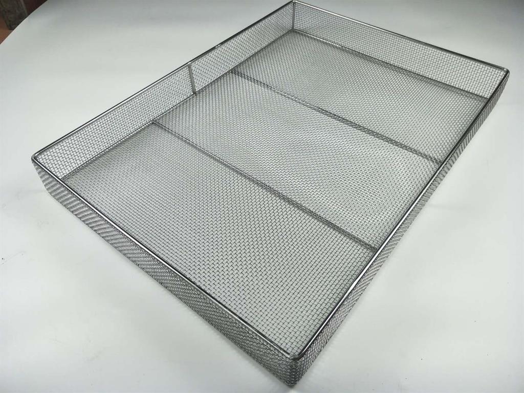 不锈钢烘干筐的材质通常有:302、或304、或304L、或316、或316L等,都是采用的不锈钢材。有时直接使用不锈钢轧花网、不锈钢电焊网、不锈钢编织网和不锈钢冲孔网等。除此之外我厂还生产烧烤网片,过滤网片,清洗筐,医疗器械消毒筐,异型网片,烘干筐等产品。