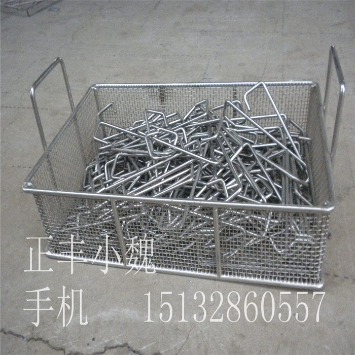 加工工艺:将不锈钢丝或低碳钢丝折弯、焊接成各种形状的清洗筐。采用不锈钢轧花网、不锈钢电焊网、不锈钢编织网和不锈钢冲孔网制成各种点焊清洗筐(可带腿带盖)、